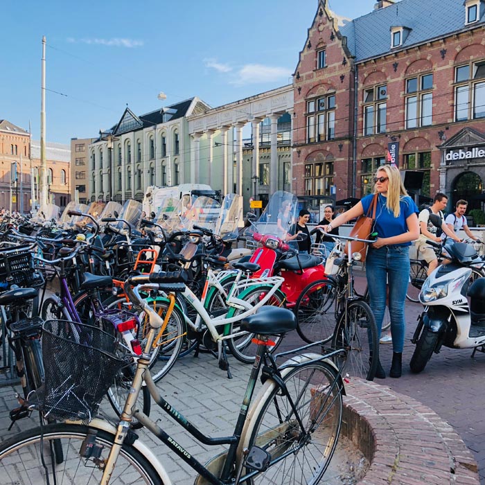 从街上这到处乱停的自行车判断,我应该是已经到了荷兰。在中国以外,没有看到任何其他国家有这么多的自行车。