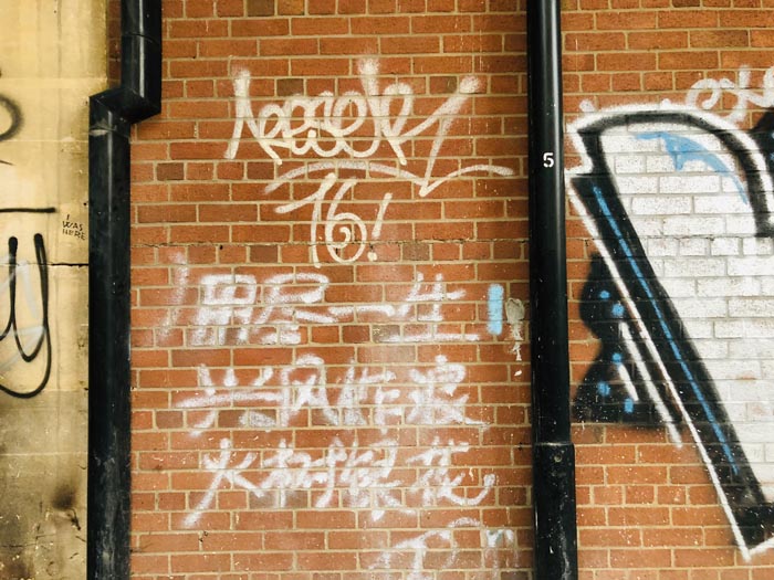 那句话旁边还有很多别的无名艺术家的涂鸦,意外看到了几行中文:用尽一生、兴风作浪、火树银花。