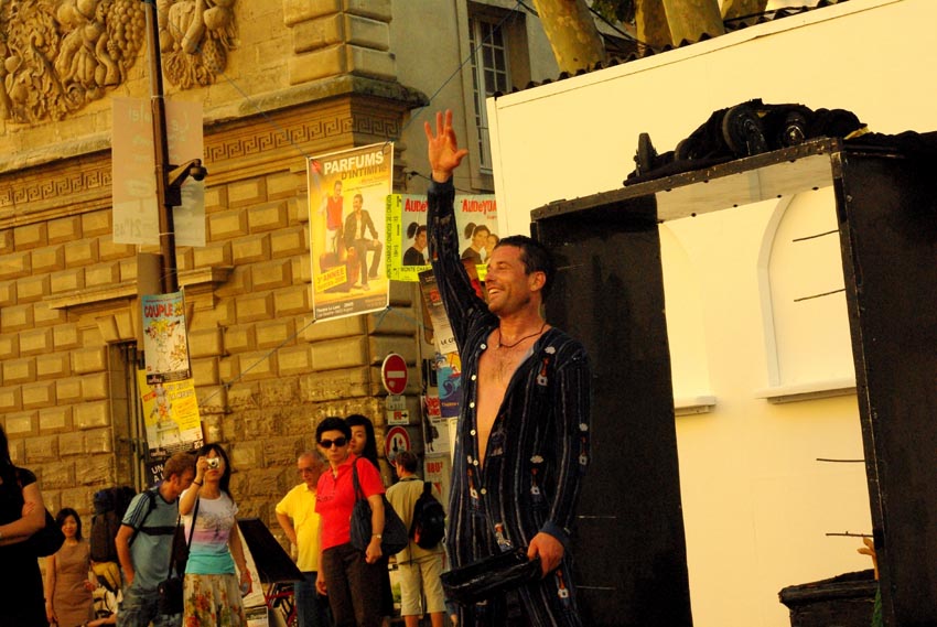 我们到达的时候,正是一年一度的亚维农国际戏剧节开幕的前两天,全世界许多剧团都汇聚到了这里。整个城市的大街小巷,都张贴满了各个剧团的演出海报。我在其中看到了几个台湾剧团,不过没有看到大陆的剧团。
